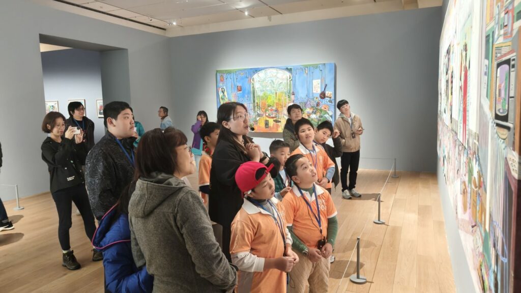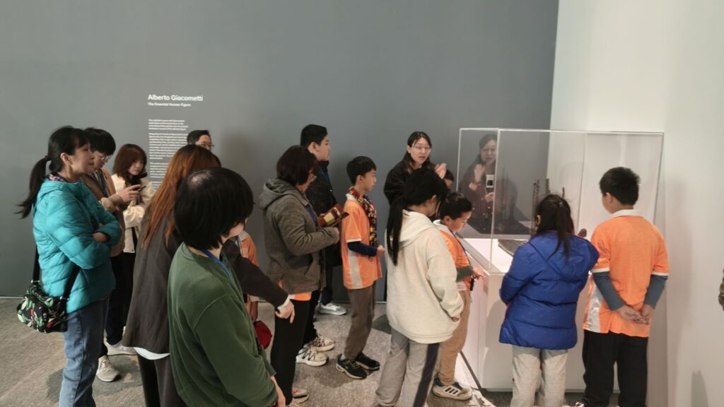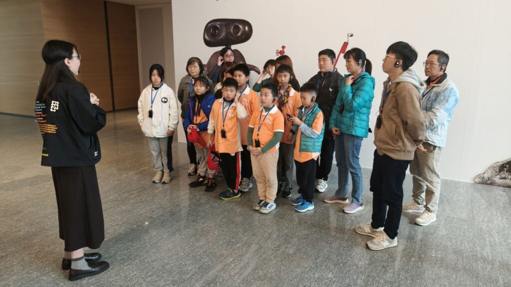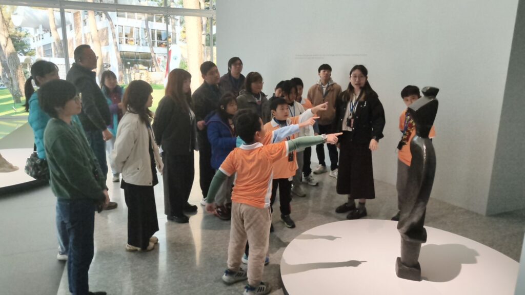在參訪過程中,孩子們透過老師與引導人員的陪伴,練習放慢腳步觀看、停留思考。有人注意到雕塑的高低比例,有人被畫面中的色彩吸引,也有人開始試著說出:「這件作品讓我想到什麼。」