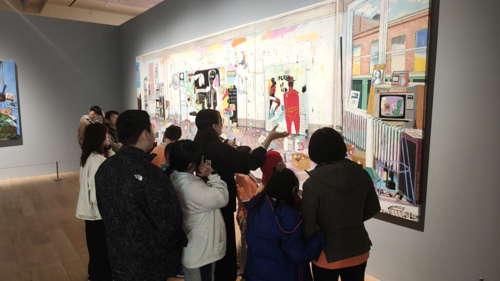 本次行動藝術館活動,師生實際走進富邦美術館,近距離欣賞不同形式的藝術作品。對許多孩子而言,這是第一次走進專業美術館,也是第一次如此安靜而專注地站在作品前,感受線條的張力、色彩的變化,以及作品與空間之間的關係。