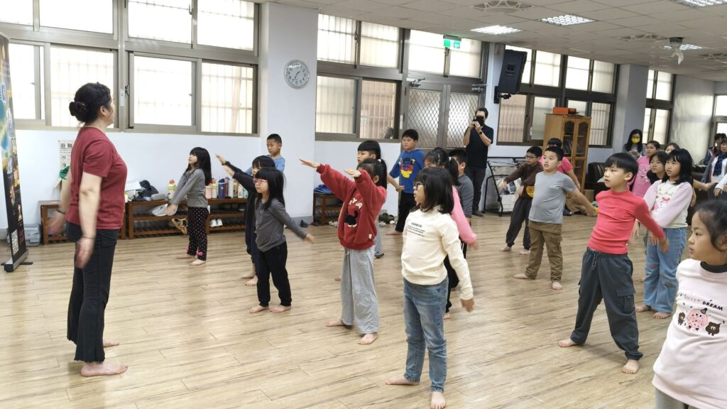 在黃蘭秀老師的專業引導下,孩子們透過音樂、節奏與身體律動,逐步進入表演藝術的世界。課堂中: