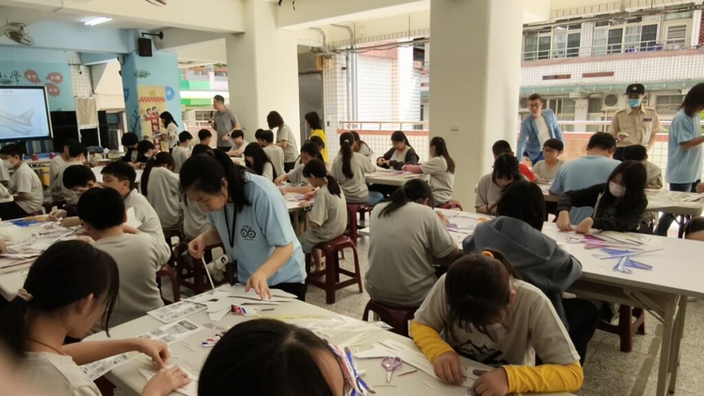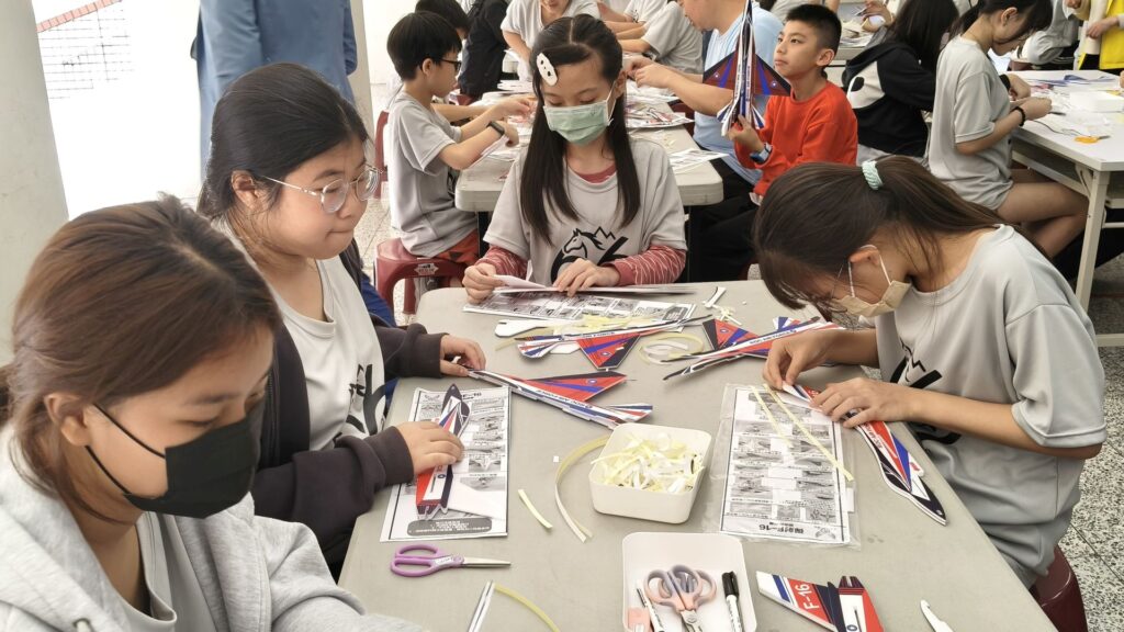 本次活動過程中,並由基金會企劃曾組長現場帶領,引導學生一步一步完成 F16 手拋飛機的組裝與試飛。從零件辨識、組裝方式,到如何拿捏投擲的角度、力道與方向,曾組長都耐心說明、逐步引導,讓孩子能夠在清楚易懂的帶領下,安心參與、快樂學習。