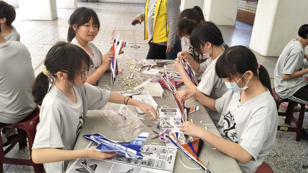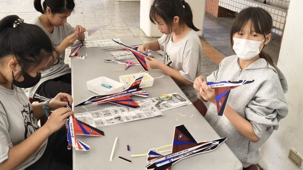 本次活動以 F16 手拋飛機為主題,讓學生親手完成組裝,再透過反覆試飛,觀察飛機飛行的狀態與變化。孩子們在看似簡單的遊戲中,逐漸理解到,小小一架手拋飛機,其實蘊含不少原理與技巧。